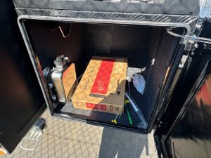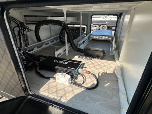 • Electric ramp/sundeck with LED roof lighting and 9x tie down points