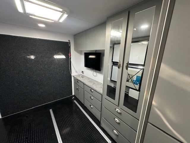 - Entertainment cupboard in rear with 32” TV