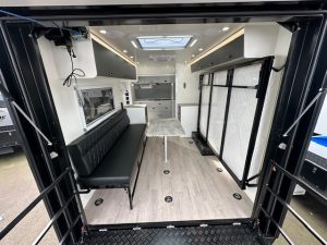 The drop-down rear access ramp doubles as a sundeck area, perfect for relaxing after a ride.