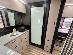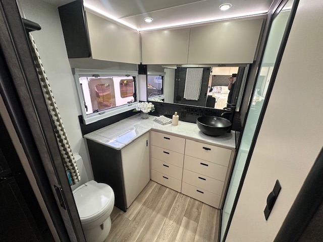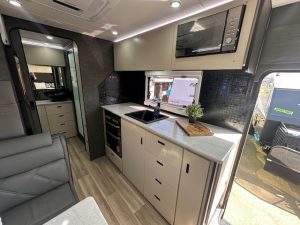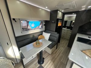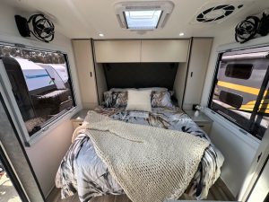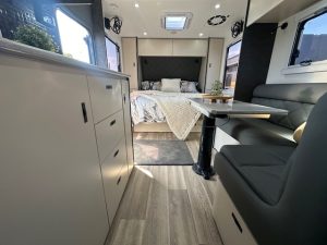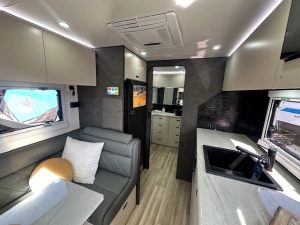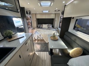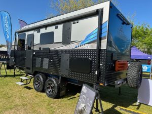 The Grand Explorer XT range, is the pinnacle of off road luxury. At first glance the tough exterior comprises of a fully upgraded “OFF ROAD” trussed chassis with mud terrain tyres. Air bag suspension will allow you to self level the caravan, along with increasing & decreasing travel height depending on your towing needs.