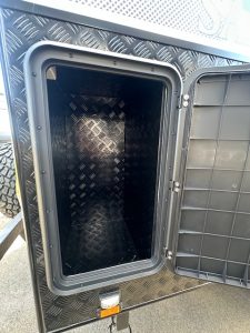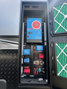 - Victron 3000 plus mounted behind fridge with Wolf fabrication door