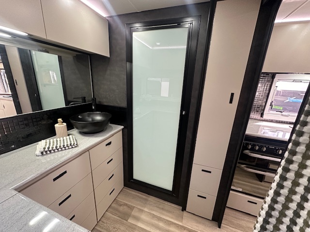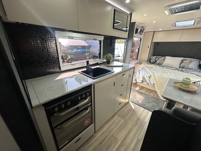 On the inside the quality of Highclere’s finish is complemented with the use of acrylic laminate board & rolled benchtops. The colour range is quite extensive so that you can easily create your very own home away from home.