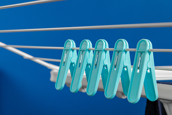 For a budget option, consider a simple portable foldable clothesline. These clotheslines have pegs that you can use to keep your laundry in place on windy days. They are also very flexible, so you can move your laundry depending on the weather.